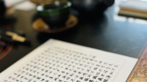 写経は初めてでした。薄く下書きしてある用紙に、なぞる形で書いていきました。最初は、きれいに書こうと気を遣っていましがが、途中から、完全に無になっていました。家にいると、ついスマホを見たり、テレビを見たりしてしまいます。30分ただ紙と文字と向き合う、貴重な体験でした。